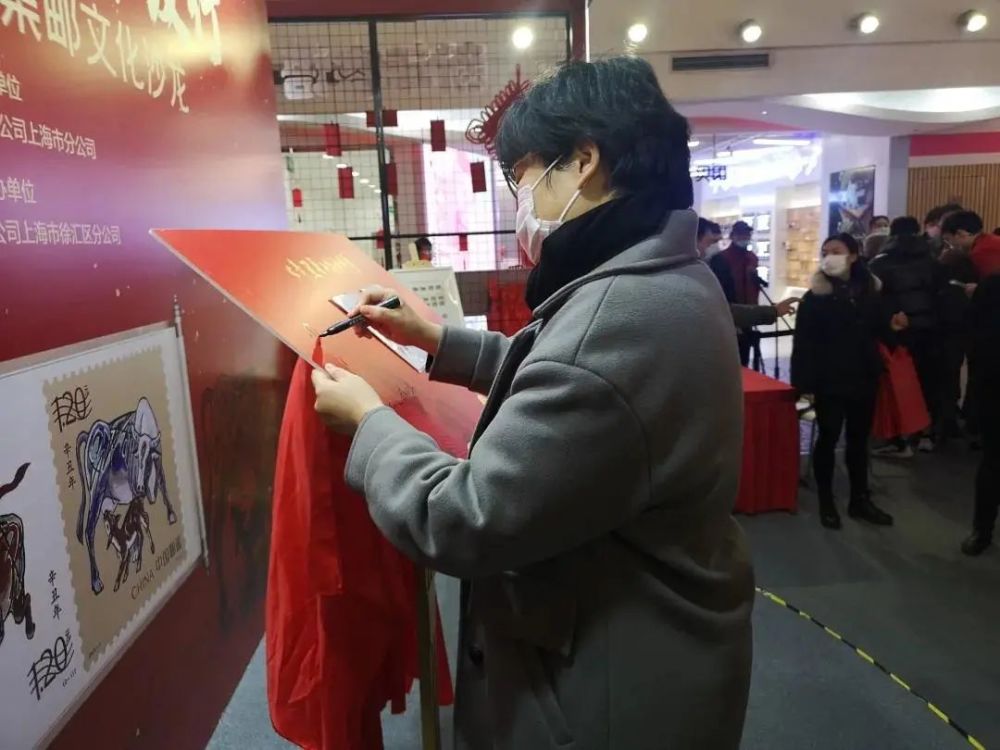 1月17日上午,《辛丑年》邮票发行暨2021年新春集邮文化沙龙活动在徐汇区美罗城举行,徐汇区分公司副总经理孙蕙致辞,讲述美罗城“新年邮局”的由来,中国邮政生肖邮票的文化传承及未来与徐家汇商圈精诚合作的方向。著名画家、设计师张安朴先生讲述邮票设计的故事。他充分肯定了徐汇邮政精心设计的《福牛安康》邮折,并期待与广大邮友一同喜迎新年、拥抱春天。 在随后的仪式环节中,徐汇区分公司副总经理孙蕙与徐家汇商城集团营销管理部副部长黄丹妮共同为“新年邮局”纪念邮戳揭幕。著名画家、邮票设计师张安朴与各位领导共同为《福牛安康》纪念邮折揭幕。仪式最后,与会嘉宾共同在大版邮票上签名留念。 仪式结束后,邀请张安朴先生现场签售《福牛安康》纪念邮折,活动现场气氛热烈,引来众多客户排队,购买邮折及生肖邮票并与邮筒及自行车拍照打卡。签售活动一直持续到中午12时,当晚10点,为期7天的美罗城“新年邮局”快闪活动正式画上圆满句号。此次活动的举行,为徐汇区的集邮爱好者搭建了深度交流的平台,也与徐家汇商圈拉开了合作的新篇章。 记者:柴斌 通讯员:孙梦醒 编辑:毛雯露 转载请注明来自上海徐汇官方微信