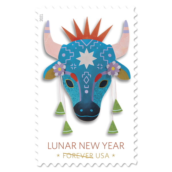 (财见2021年2月3日讯)随着农历新年临近,美国邮政总局发行了一枚纪念牛年的永久邮票。这些邮票在全国各地的邮局出售。 在2020年开始推出的新生肖系列邮票中,牛年邮票是第二个。第一套生肖邮票于1992年至2005年间发行,第二套则于2008年至2019年间发行。 邮票上的面具设计融入了具有象征意义的元素。其中一些图案采用亚洲纺织品的风格制作。紫色的花代表春天的到来。在中国文化中,农历新年也代表着春天的到来。牛头中央的星星代表着中国十二生肖的天象。 艺术总监Antonio Alcalá用Camille Chew的原创作品设计了这枚邮票。这枚永久邮票以20张为一版出售,其价值将始终等于当前一等邮件1盎司的价格。