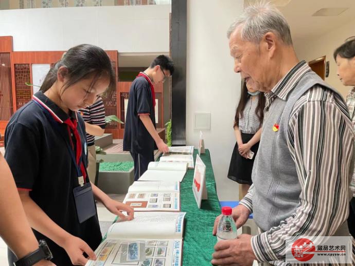 当天的活动,学校组织了200多个青少年参观邮票展览。2000多张邮票作品分别被放在校园的3个展示区进行展出,其中在第一展区的显著位置,陈列着600多张开国领袖、革命先驱、英雄人物模范的邮票作品,提醒新一代青少年牢记初心,奋发有志,向革命先辈学习;第二展区有近800多张邮票,反映了从40年代到80年代涅槃中的中国从无到有所经历的风风雨雨,鼓励同学们励精图治,要从历史中吸取教训的经验;第三展区展出的是改革开放后奋进中的中国发生的巨大变化,对外交流不断扩大、工业发展突飞猛进、城镇化建设有序扩张、一国两制振奋精神.......人们从服装、思想有了焕然一新面貌,生活也有了翻天覆地的变化。每十年一个节点,充分记录和展示了新中国的光辉历程,展现的在中国共产党的领导下,中华民族的强劲崛起。东浜社区87的老党员曹宗馨还在一旁为师生们讲解每一张邮票背后的来源以及还原当时历史时期情况,说到动情地方曹老还感慨地说:“收集邮票近50多年,经历了许多国家特殊时期,亲眼见证了国家的发展。壮丽河山风风雨雨,党和人民同心、同梦。我的邮票经过社区的多方联系已经在军营、社区、校园多次展出,让更多人见证历史、了解历史。“做为一名党员我感到十分有意义”。参观的党员也表示:“看到历年纪念邮票整齐陈列,每一张邮票仔细品读都见证了一段段光辉岁月,更是一堂内涵丰富的历史课。”