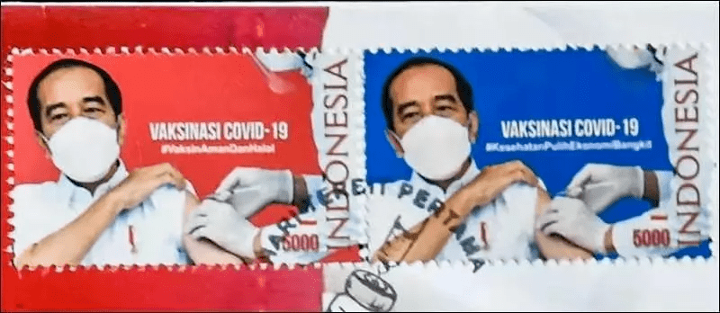 今年2月26日印尼总统佐科宣布在全国发行一系列《新冠疫苗》主题的邮票及首日封。邮票的画面内容是佐科接种中国科兴公司的克尔来福新冠疫苗。相关资料:《印尼总统接种中国疫苗登上邮票》