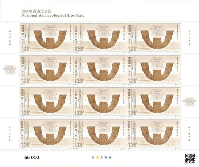 在国家文物局支持下,中国邮政将于10月17日发行《国家考古遗址公园》特种邮票一套4枚。此套邮票以“中华文明探源”为主题,图案名称分别为良渚国家考古遗址公园、陶寺国家考古遗址公园、石峁国家考古遗址公园、二里头国家考古遗址公园。全套邮票面值4.80元,计划发行数量为701.7万套。