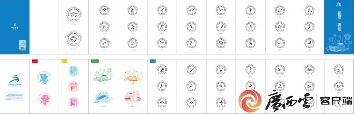 日前,由中国邮政发行的第一届全国学生(青年)运动会邮票邮品正式亮相,该系列将广西山水、城市风貌、运动项目与集邮典藏、文化相结合,设计制作了学青会个性邮票折、纪念封、明信片等邮票邮品类特许商品。