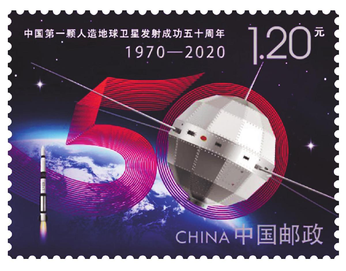 1970年4月24日,我国第一颗人造卫星发射成功。为纪念“东方红一号”发射成功50周年,2020年4月24日,中国邮政发行《中国第一颗人造地球卫星发射成功五十周年》纪念邮票一套1枚。