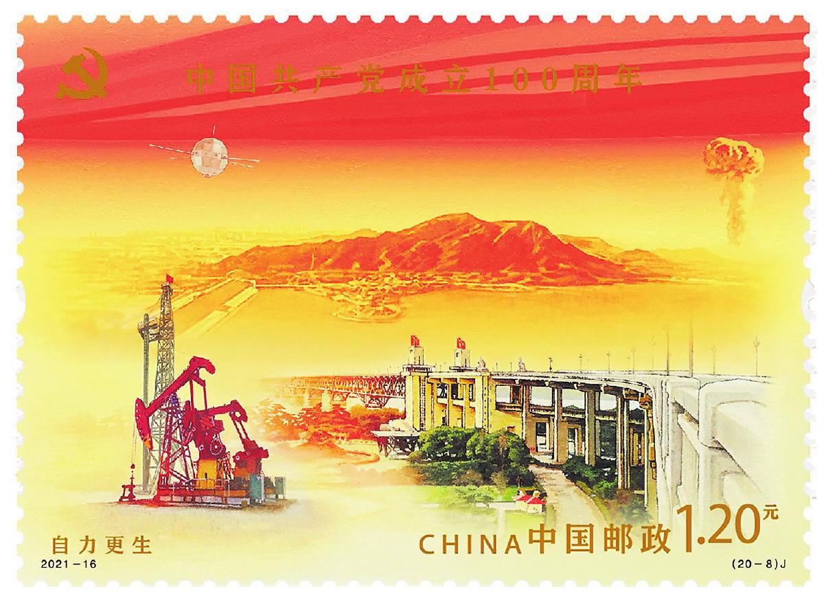 1964年10月16日,中国第一颗原子弹爆炸成功,有力打破了超级大国的核垄断。至此,中国成为继美国、苏联、英国、法国之后第五个拥有核武器的国家。这一历史时刻,也被铭记在2021年发行的《中国共产党成立100周年》第8枚邮票“自力更生”的票面内容中。