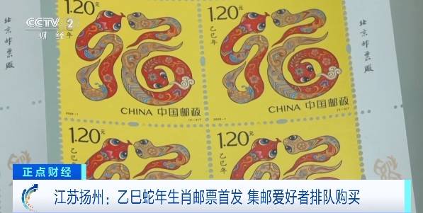 (央视财经《正点财经》)近日(1月5日)中国邮政发行《乙巳年》特种邮票,邮票一套两枚,图案分别为“蛇呈丰稔”和“福纳百祥”。在江苏扬州,为了买到心仪的邮票,不少集邮爱好者早早来到邮局排队等候。当天上午八点多,记者在扬州邮政邗城集邮专卖店看到,购买生肖邮票的集邮爱好者已经排到了大门外。排在第一位的王女士告诉记者,她前一天晚上8点多就来排队了。现场工作人员介绍,特种邮票以敦煌壁画和传统民俗为灵感来源,将蛇的形象与吉祥寓意巧妙结合。两枚邮票单价均为1.2元,全国计划发行数量套票2680万套。转载请注明央视财经