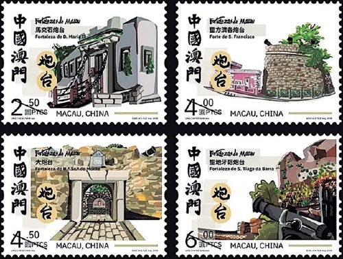 4月8日,澳门邮电局发行《澳门炮台》邮票1套4枚、小型张1枚,展现澳门独特的炮台古迹及文化景观。邮票分别描绘了马交石炮台(1852年启用)、圣方济各炮台(1629年竣工)、大炮台(1626年落成)、圣地牙哥炮台(1629年建成),面值分别为2.50澳门元、4.00澳门元、4.50澳门元、6.00澳门元。小型张描绘了东望洋炮台(1622年落成),面值为14.00澳门元。 自17世纪始,澳门因抵御外敌及海盗之需,逐步构建了以炮台建筑群为核心并与依山而建的城墙相连的海防体系,其范围涵盖澳门半岛中南部。现存炮台遗迹保存完整,是澳门作为昔日海上丝路重要中转港的海防体系发展及城市发展历程的重要见证。 (甄屏帆)