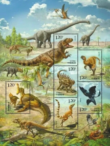 “即将发行的《中国恐龙》特种邮票,包含6枚恐龙邮票和一枚小型张,内容除太白华阳龙外,还有青岛龙、永川龙、中华龙鸟、巨盗龙和小盗龙,小型张表现内容为马门溪龙。”该负责人介绍,这7个恐龙种类均是从我国已记述的160多种恐龙种属中精选出来的。