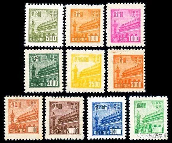 1950年2月至1958年9月,发行了普1到普10共10套普通邮票。