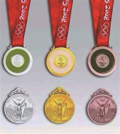 2008年北京奥运会奖牌 “有眼不识金镶玉”多用来比喻见识浅陋,缺乏识别事物的能力。然而,什么是“金镶玉”呢?它来源于一个历史故事。 春秋时期,楚国卞和得玉璞献给楚文王,琢之成璧,称为“和氏璧”。传说此璧冬暖夏凉,百步之内蚊不敢飞近,为稀世之宝。秦统一中国后,“和氏璧”几经转手,落入秦始皇之手。秦始皇令玉工将其雕琢为玉玺。该玉玺长、宽、高均为四寸,上面镌刻着李斯所书的“受命于天,既寿永昌”八个篆字。四周还雕饰着五龙图案,玲珑剔透,巧夺天工。秦始皇爱不释手,将它奉为神物。 汉灭秦后,“和氏璧”几经沧桑又到了刘邦手中,刘邦把“和氏璧”作为传国玉玺代代相传,一直传了12代皇帝。到了西汉末年,两岁的孺子婴即帝位,藏玉玺于长乐宫。王莽篡政后,派王寻、苏献胁迫孝元皇太后交出玉玺。太后见国破家亡,一怒之下将玉玺取出摔在地上,这个传世国宝当场被崩掉一角,后来又命能工巧匠进行整修,用黄金镶上缺角,于是得名“金镶玉玺”。“金镶玉”即由此而来。 稀世国宝“金镶玉”自三国后即不知去向了,但“有眼不识金镶玉”的谚语却流传至今。 “金镶玉”是北京奥运会的奖牌设计所采用的式样,喻示中国传统文化中的“金玉良缘”,体现了中国人对奥林匹克精神的礼赞和对运动员的褒奖。它的设计方案,创意十分新颖,突破了以往任何一届奥运会奖牌设计单一材质的传统,又融入了典型的中国文化元素。以“金镶玉”为创意的北京奥运会奖牌挂钩由中国传统玉双龙蒲纹璜演变而成。整个奖牌尊贵典雅,中国特色浓郁,既体现了对获胜者的礼赞,也形象诠释了中华民族自古以来以“玉”比“德”的价值观,是中华文明与奥林匹克精神在北京奥运会形象景观工程中的又一次“中西合璧”。
