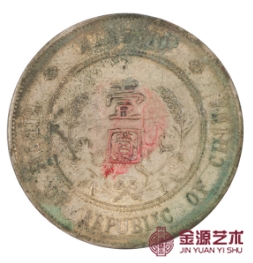 孙中山头像中华民国开国纪念币银元,正面中央为孙中山侧面肖像,边缘内上镌中文隶书体“中华民国”4字、下镌“开国纪念币”5字、左右长枝花饰。背面中央为中文隶书体“壹圆”及嘉禾,边缘英文“中华民国”、“壹圆”,左右分列五角星(后改为六角星)。钱币版面设计优雅,雕刻精良,但是,铸造量不多,所以存世极罕,有极高的历史价值与学术价值。