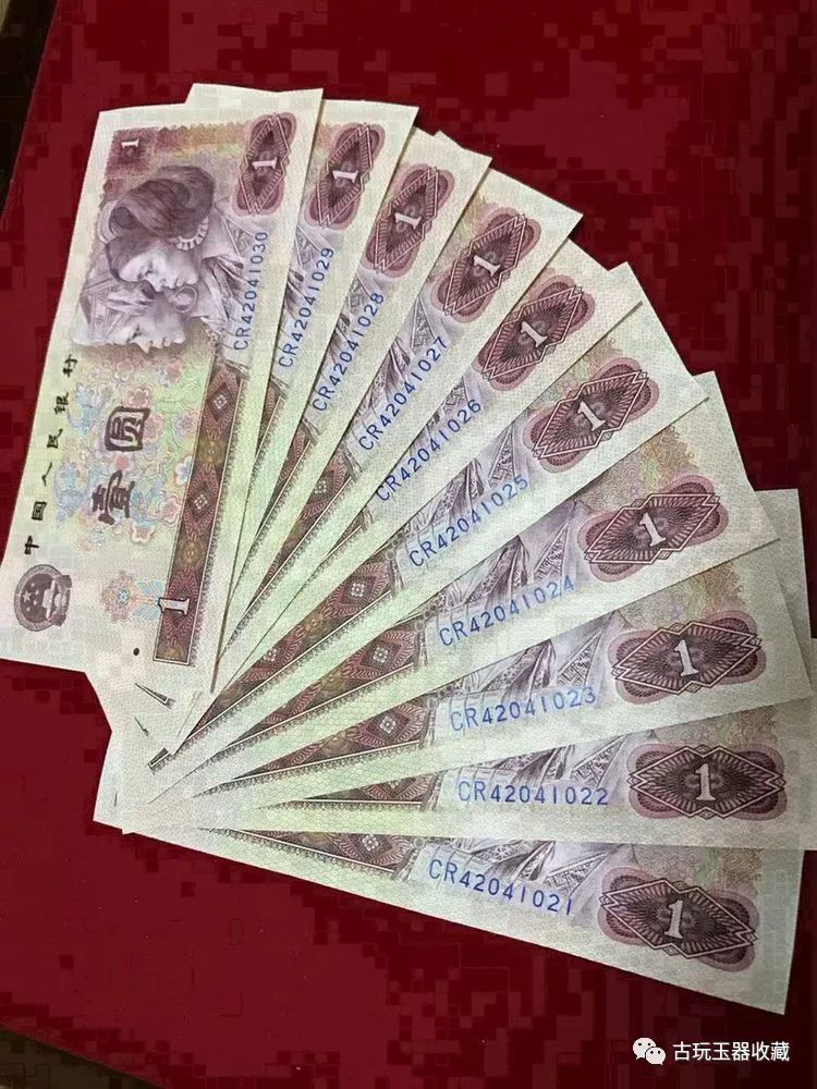 古玩市场上,10张一元纸币同行看后:价值320元! 在收藏界里面,有人收藏钱币是单张收藏,有人是标十收藏,也有人是整刀整捆的收藏,而在这些收藏方式中,同样纸币的收藏价值是不一样的。而最近就有藏友拿出10张收藏多年的一元纸币到古玩市场上请教一些同行,而这10张一元纸币在同行见到后,说出了它的收藏价值,是在320元。 这是什么样的一元纸币,这种一元纸币跟我们现在所使用的第五套人民币里面的一元纸币其颜色是不一样的,它是属于第四套人民币,其颜色是红色的。 而在第四套人民币中,面值一元的纸币已经退出了流通市场,在古玩市场上是存在收藏价值的,但是它里面存在了三个不同的版本。 这三个版本的一元纸币其区分方式那就是查看纸币背面上的年份,分别有1980年的1990年的和1996年的,三个年份的一元纸币在古玩市场上的价值是不同的。 而这位藏友拿出来的10张一元纸币是属于1980年的,并且还是一组全新品相的标十(十连号),这些一元纸币上的冠号全部是CZ。这种一元纸币你还能找到吗? 收藏寄语:古玩在不同地域有着不同的市场价格,不同的人愿意出的心理定价也不同,应该本着自己心理定价为主,多看多了解,少买,以兴趣娱乐为主。