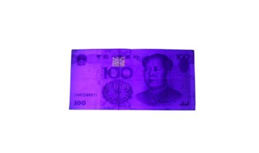 这是一张2005年发行的100元人民币,这张人民币的图案等方面和一般钱币并无差异,它的编号为C68S548571,并不存在同号情况。本来这 样的100元在市面上很为常见,但奇怪的是,这张100元纸钞镶嵌了独特的艺术,打着验钞灯颜色透着蓝色,像海水颜色,非常漂亮。而且长短不规则,纸币的 长度明显比正版纸币短,右边有明显的倾斜度造成了与正版人民币的不对称。三维防伪左边毛泽东的头像水印有小部分的多印水印,水印的眼睛也有错误。后面的水 印有很多的红色点点。“物以稀为贵,物以价为所值。”这种情况从未出现过,首先让人怀疑的是假币,持有者立即前往中国人民银行鉴定,发行这枚钱币是真币, 其中多处的部分是由于发行单位在裁币过程中,忽视了这张不合格的“漏网之鱼”,导致它在市场上出现了。这种错版十分的罕见,打破了万分之一的概率。