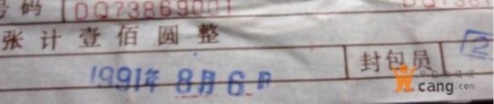 8001DQ 的同质金色荧光补号极少,因为当时在8001DQ印刷之前的剩余的补号JZ冠号较多,为避免浪费,一直沿用,下图的手工补号,更能说明问题,尾号 1998、1999为防伪荧光,尾号2000为手工补号用的是以前印好纸币手工补号,所以为无荧光,或者是所谓的“背红”。8001DQ同质金色荧光补 号,仅限JZ389号段,存世量极少。(手工补号见下图)