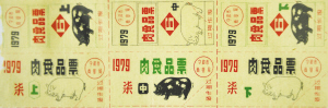 ▲1979年的六枚连体的肉食品票。
