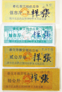 ▲奉化市在1988年曾发行过一套救灾粮票。这是当年奉化7·30洪灾发生后,地方政府及时救灾的见证。