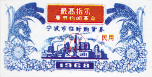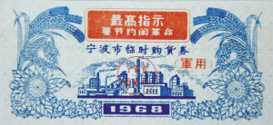 ▲两张一套的1968年宁波市临时购货券。