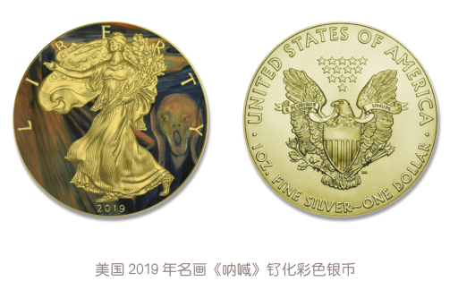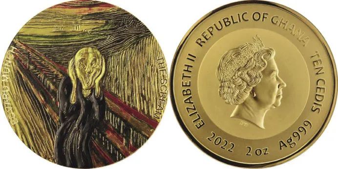 2019年,美国发行有一枚以《呐喊》作为行走女神背景图案的钌化彩色银币。2022年,加纳发行有一枚《呐喊》主题的浮雕镀金银币。