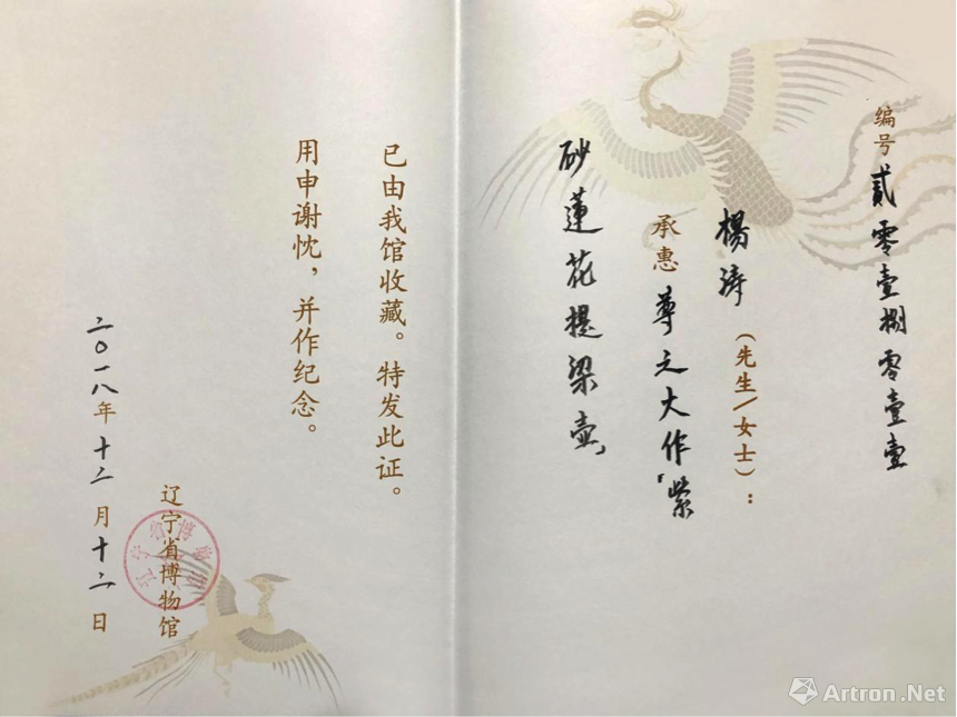 2018年12月12日,宜兴紫砂名家杨涛的紫砂壶作品《莲花提梁壶》被辽宁省博物馆收藏。