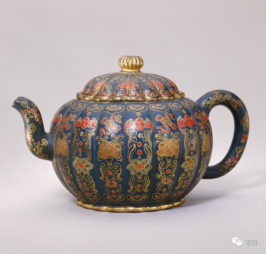 清乾隆 紫砂胎绿地粉彩描金瓜棱执壶 北京故宫博物院馆藏