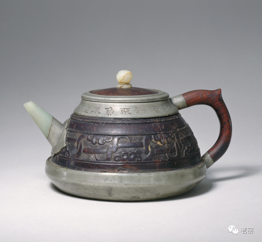 清道光 宜兴窑石楳款紫砂胎镶玉槟榔木壶 北京故宫博物院馆藏