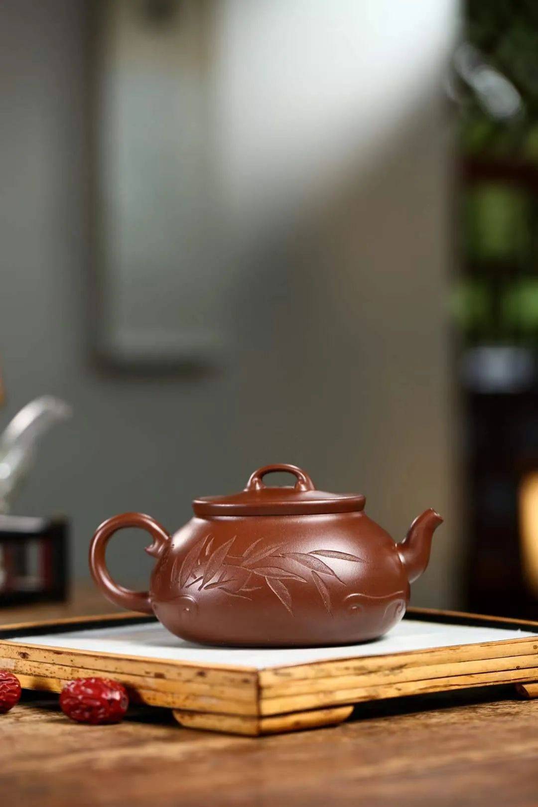 说白了就是这壶看着要舒服,光泽自然、含蓄,在整体的观感上要协调。紫砂壶的光泽讲究的是看起来光泽内敛,由内而外地发出,非常柔和。