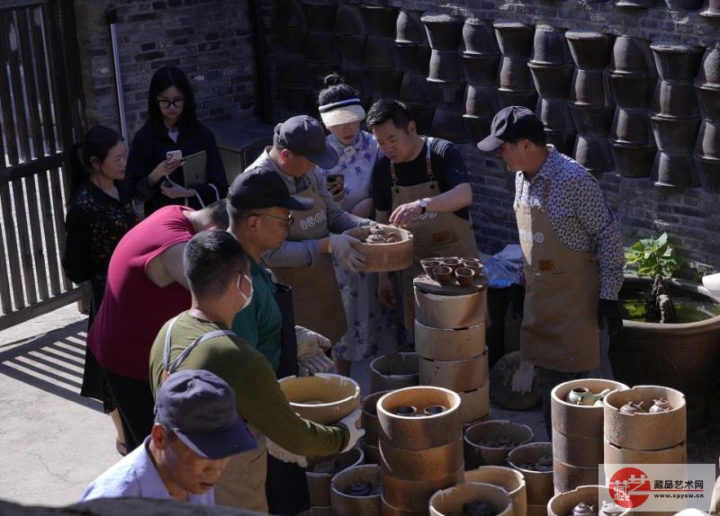 除了慕名前来的紫砂爱好者,还有许多紫砂手艺人来到现场。他们放在龙窑里烧制的作品将在这几天分批“出炉”,烧窑师傅们熟练而精湛的烧造技艺让这些紫砂壶、紫砂摆件和紫砂文创的成色与品质独一无二。