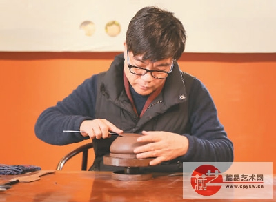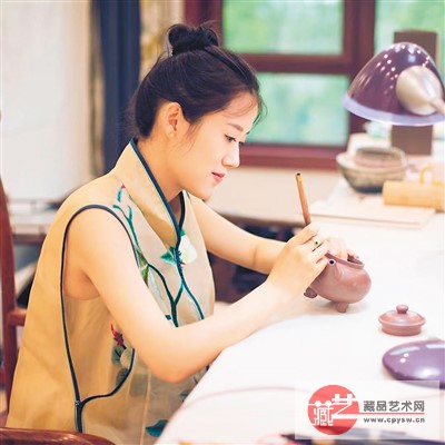 许沈紫是谢强的徒弟,从南京艺术学院硕士毕业后回到宜兴从事陶刻。“我外婆那一代就开始做紫砂壶,父母也一直做壶,我出生的时候,外公为我取名‘紫’,便是来自紫砂壶。”1988年出生的许沈紫已是“全国轻工技术能手”,目前正在澳门城市大学攻读艺术学博士。