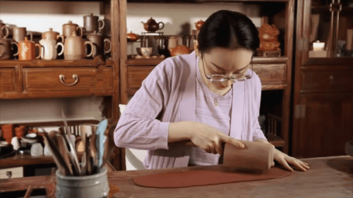 紫砂陶制作技艺极为繁杂,从选泥、炼泥,到打泥片、围身筒、安装壶嘴、壶把,再到最后的烧制,每一个步骤都需要精湛的技艺和十足的耐心。潘晶从最基础的工序学起,每天早早地来到工作室,拿起工具,开始练习打泥片。看似简单的泥片,要打得均匀平整,厚度恰到好处,绝非易事。无数次,泥片在她手中开裂,工具也不听使唤,但她从未气馁。她仔细观察老师的每一个动作,揣摩其中的技巧和力度,不断地调整自己的手法。在拍打身筒的过程中,她更是全神贯注,感受着泥土在手中逐渐成型的奇妙变化,每一下拍打都倾注了她对紫砂艺术的敬畏之心。
