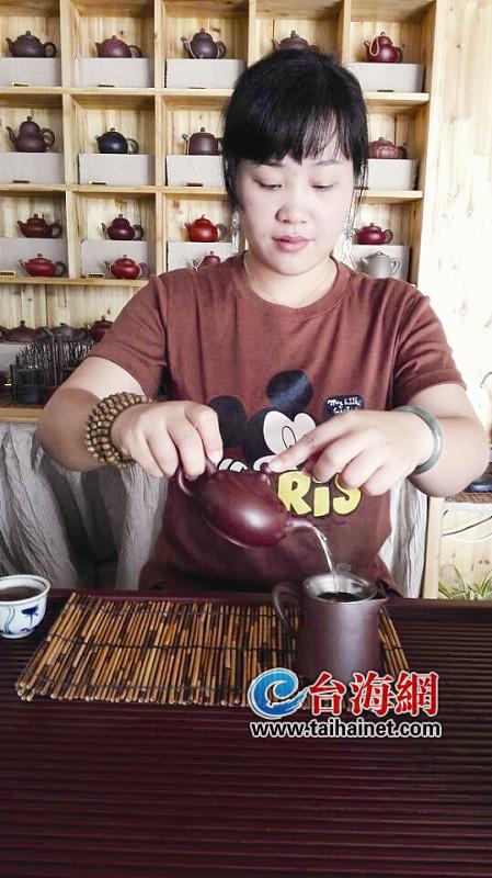 在环岛干道旁的海西花鸟城,有一家叫“船旗茶事”的小茶馆,里面摆着许多紫砂壶,老板何小芸虽然才三十出头,但已有10多年的“养壶”历史。“我喜欢买不同的茶壶回家养,就跟养小动物一样,越养越喜欢,买回来的茶壶也越来越多。”其中,她最喜欢养的,是紫砂壶。