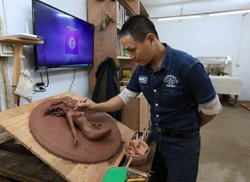 彭文鸿在雕塑作品