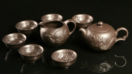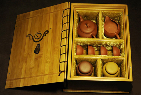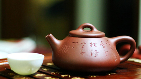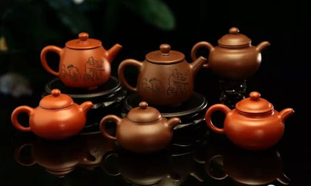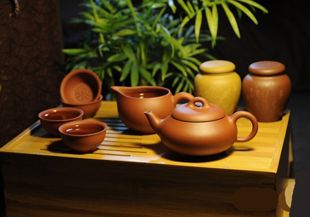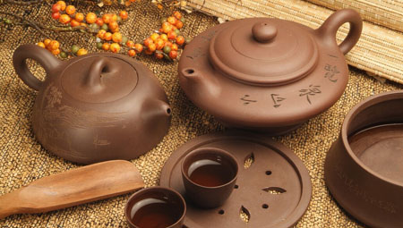 宜兴紫砂壶最为出名,泡茶既不夺茶真香,又无熟汤气,能较长时间保持茶叶的色、香、味。紫砂茶具还因其造型古朴别致、气质特佳,经茶水泡、手摩挲,会变为古玉色而倍受人们青睐。
