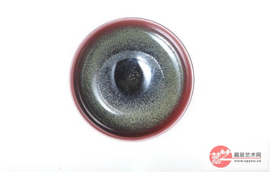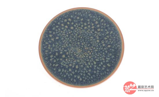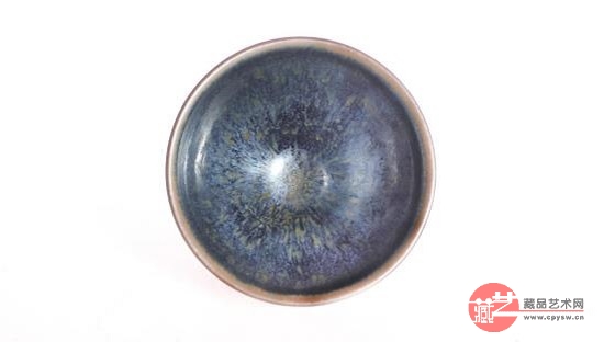 宋·杨万里他的诗句:“鹧斑碗面云萦字,兔褐瓯心雪作泓。”这句也是形容的一个鹧鸪斑建盏,通过诗中的描述,我们也可以推测,这里使用的,是一件珍贵鹧鸪斑纹建盏,黑色釉衬底有褐色兔毫,黑釉面之中有圆点蓝色彩斑。这样才有可能出现碗面鹧鸪斑纹。这种盏也是釉面析晶曜变的结果而形成。
