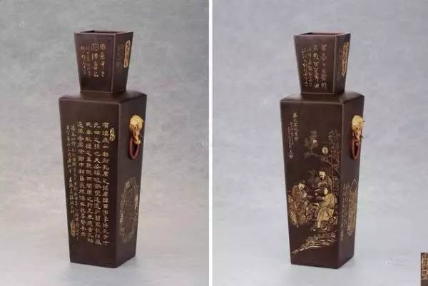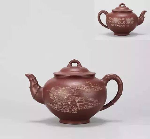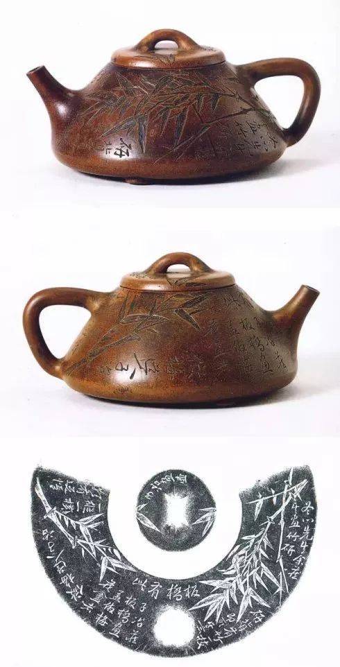 与曼生不同的是,他不仅在壶上刻铭文且把他最得意的竹子锓于壶上,俯仰疏密、一如其画;并大胆尝试,在壶盖上装饰,竹枝从壶身延展到壶盖,遮天蔽日,别具匠心。他以自己的才气、魄力把文人紫砂推向一个新的高度,被誉为“曼生之后第一人”,他自号“壶公”,确实名副其实。