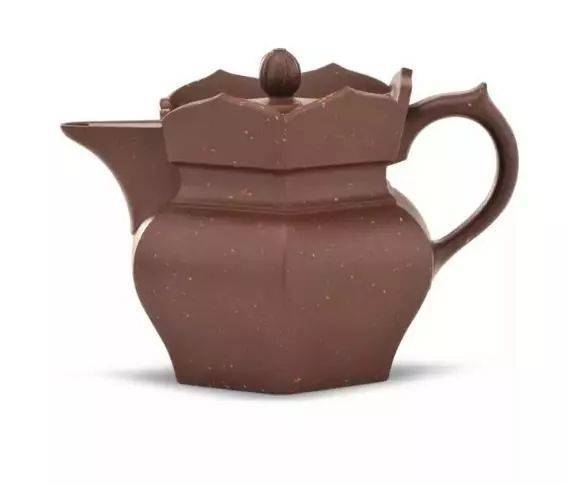 清嘉庆 杨彭年制、陈曼生及杨彭年刻紫泥觚棱壶,为吴昌硕旧藏,于西泠印社2015年秋拍中,以356.5万元成交。(西泠印社)