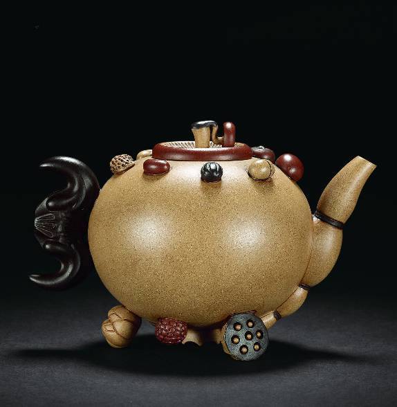 陈鸣远出生于紫砂世家,制壶技艺精湛全面,又勇于开拓创新。他仿制的爵、觚、鼎等古彝器,工艺精,品位高,古趣盎然。所制茗壶造型多种多样,特别善于自然型类砂壶的制作,作品有瓜形壶、莲子壶、束柴三友壶、松段壶、梅干壶、蚕桑壶等均极具自然生趣,把自然型壶在明人的基础上,进一步推向艺术化的高度。