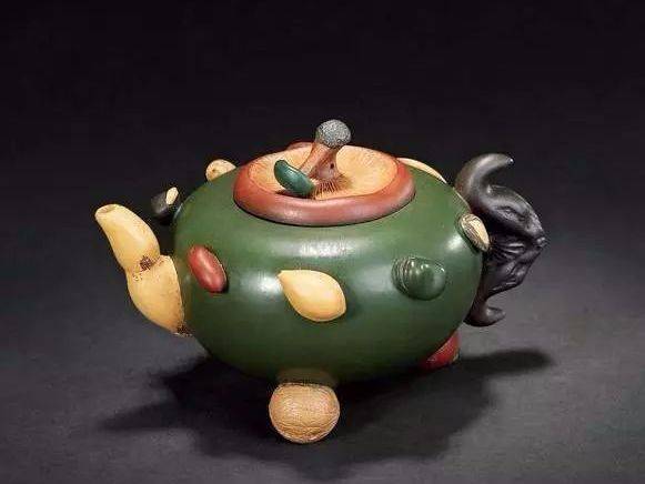 清中期 杨彭年制、陈曼生刻香蘅款紫泥粉彩泥百衲壶,在西泠印社2017春拍中以1449万元成交。