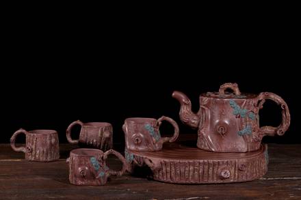 汪庆红比较注重紫砂壶的传统造型。在他看来,能够经受住岁月洗礼的一定是经典。但他又崇尚师古而不泥古,他总是跃跃欲试地想为曾经的经典作品融入新鲜的元素,祈盼成为新的经典之作。他的《梅桩》《供春》、《九龙呈祥》组壶等都是在器形与刻绘的交融中包容美学的韵味,蕴蓄象征的含义。这种形意相依,气韵生动的艺术个性,可以作为其紫砂壶艺术的注脚。