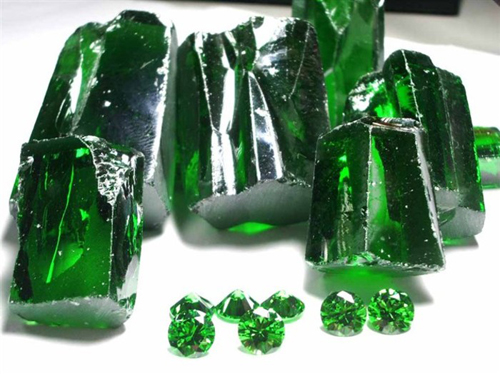 至于合成祖母绿的特征,还是比较明显的。看到那种色彩异常鲜亮,颜色分布特别均匀,而且当中基本没有杂质、裂痕,就要多留个心眼了,有经验的人用肉眼就可以判别出来。