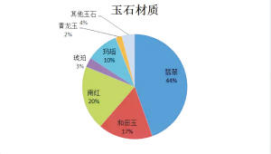 南红网络截图 报告称,从全国来看,目前玉雕界最受欢迎的材质,翡翠占了4成以上,达44%,和田玉达17%、南红为20%,从销售数据来看,翡翠、和田玉、南红渐成三足鼎立之势。