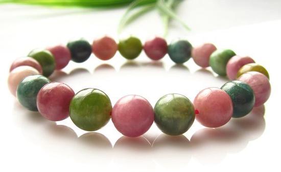 糖果碧玺一般指选择红蓝绿三原色为主体的珠子搭配串成的手链。红蓝绿三色在碧玺中较为珍贵,串制糖果碧玺对珠子材料的要求很是苛刻,当然效果也更加鲜艳可爱,如同糖果般惹人喜欢,颜色活泼生动。可红可绿,可蓝可紫,仿佛童年糖果罐中的糖果般鲜艳动人。同时糖果珠链的普适人群范围更加广泛,不论男女老少均可佩戴。