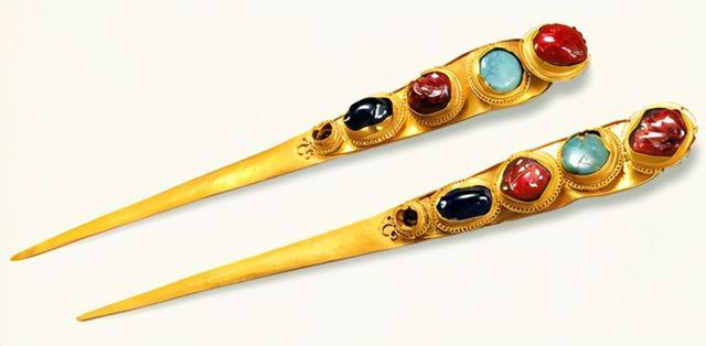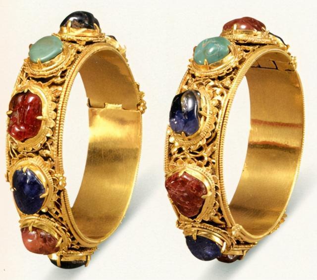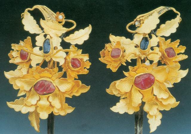 因为修路等多种原因,明朝中山王徐达第五世孙徐俌墓、黔宁王沐英之孙沐斌及第十世孙沐叡墓被文物部门考古发掘,墓中出土了许多精美绝伦的玉器、金银器等陪葬品。 这些墓主人生来富贵,受先祖荫蔽,继承了明朝一级公爵。依靠权势和雄厚的财力,他们大肆兼并土地,即使不事劳作,也能过上皇帝般的日子。 古人“事死如事生”,他们生前享用的东西,都被带到了墓里,以供阴间继续享用。这让我们有机会,亲眼见到明朝贵族生前过着怎样的锦衣玉食的生活。 所以他们的墓里随葬品丰富,即使几经盗掘,依然留下了大量精美的生前用品。 其中,金饰品做工考究,金光灿灿,精美异常,即使埋没数百年依然熠熠生辉。 下面让我们一饱眼福,来鉴赏一下明代贵族使用过的精美金饰品。 镶宝石金凤簪 艾虎五毒金掩鬂 蝴蝶牡丹发簪 镶宝石金顶簪 镶宝石金耳坠 金手镯 镶宝石火焰纹金顶簪 镶宝石火焰纹金顶簪 镶宝石金挑心 镶宝石凤纹金分心 镶宝石云形金掩鬓 镶宝石莲花金簪 镶绿松石金耳坠 镶宝石金链香盒 镶宝石镶玉金带板 镶宝石龙首金镯 镶琥珀佛手形金簪 镶宝石金簪 金钏 镶绿松石金簪 镶猫眼石金簪