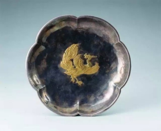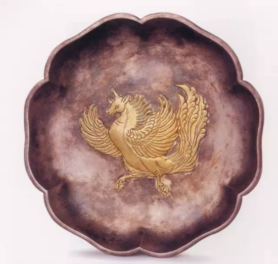 鎏金飞廉纹六曲银盘 陕西历史博物馆藏