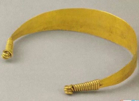 除了在头上做文章,腕部也是金银大放异彩的地方,不仅让佩戴的女子举手投足都显得珠光宝气,而且还能获得一种“腕摇金钏响”的听觉享受。没错,金钏,一种唐朝女子极为喜爱的手上饰品。何家村窖藏中有一件典型的素面金钏,是一件开豁口的腕饰,开口而非闭口,这样,唐朝的女子就不用担心日渐丰腴的手腕会将金钏撑坏,她们可以根据手腕的粗细来自由调节开口的大小。