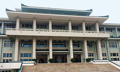 国家典籍博物馆的场馆,便利用了原国家图书馆总馆南区具有中国古典园林气息的馆舍。双重檐的孔雀蓝琉璃瓦大屋顶、淡乳灰色的瓷砖外墙、花岗岩基座的石阶……未进其门,百年国图的文化气息便已扑面而来。