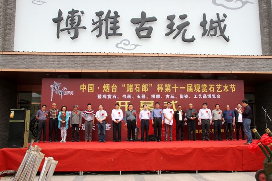 由烟台市文联、烟台博雅古玩城主办、烟台市赏石研究会承办的“中国?烟台第十一届观赏石艺术节暨书画、玉器、根雕、古玩、陶瓷、工艺品博览会”于2014年5月25日至6月1日在烟台博雅古玩城广场隆重举行。