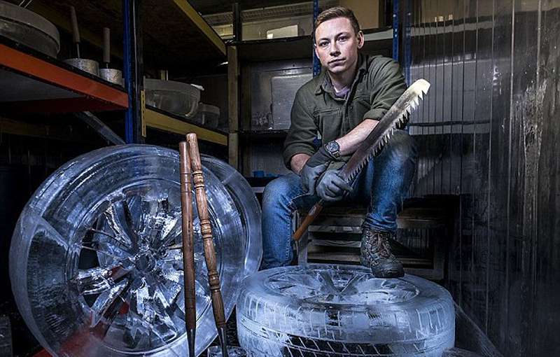 杰克·哈克尼正在制作模型和特殊效果,他是冰雕车轮团队的关键成员。(网页截图) 国际在线专稿:据英国《每日邮报》12月22日报道,英国汉密尔顿(Hamilton)的一个冰雕团队为汽车制造商雷克萨斯制造出了冰雕车轮,并将它们安装到真车上进行测试,结果显示汽车竟可缓慢行驶。 据悉,这个团队用了3个月的时间进行设计、研究以及测试。首先,雕刻家们对雷克萨斯NX真车的零部件进行激光扫描,然后复制其轮胎,包括轮胎上的花纹等细节。每个冰冻车轮都花费4名雕刻家36个小时的工作,车轮上还装有LED灯,以便让汽车看起来更酷。 雕刻团队利用流动的软化水造冰,以便令冰看起来晶莹剔透。参与这个项目的雕塑家杰克·哈克尼(Jack Hackney)称:“我们需要设计完美的轮廓,同时拥有大胆的细节设计。”而在冰雕轮胎被安装到真车上进行测试之前,工作人员还将整辆测试车放入零下22摄氏度的低温环境中停放了5天,保证冰雕车轮不会过早融化。(沈姝华)