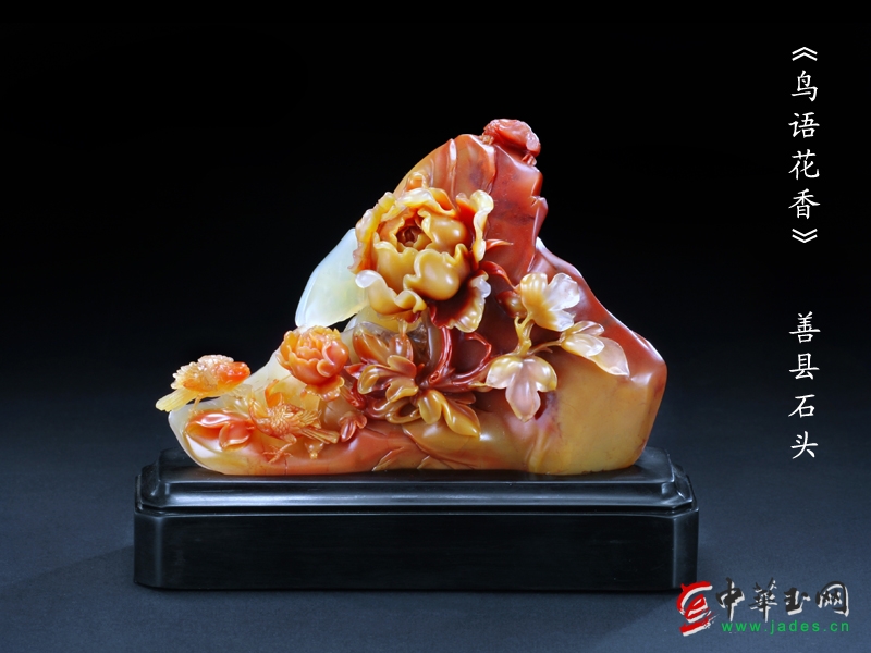 寿山石雕刻艺术以巧为上,作品的表现技巧和构成技巧的多元性为创作提供了可能。在创作过程中,一方面借助俏色和纹理的走向推敲作品的艺术表现空间,另一方面还对自身艺术深度进行颐养和挖掘,逐渐将未成形的石头唤醒,为其重新命名,让其重获新生。其作品《鸟语花香》、《丹凤朝阳》、《福海寿山》等这些简约而不简单的作品,时刻展现着自身独有的艺术气质。时刻透露着一股清新之风,尤为雅致。作者深刻了解把握了每块石头的特性后,终将看似平凡的一块石头雕琢成雅致文玩,令人爱不释手。他的这些文玩作品在圈内外颇受好评。