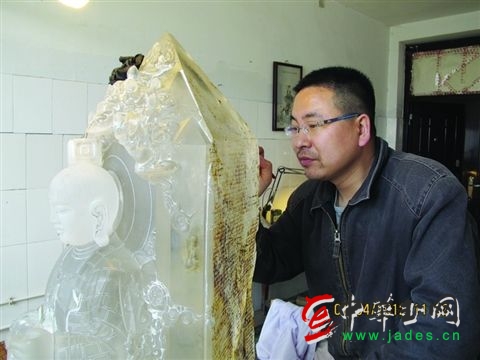 然而只身到苏州打拼的庞然总有些不踏实:“这里没有根,家不在身边,很多事情解决不了。”在苏州的首次逗留刚刚一年,他又回到了家乡,足不出户整整2个多月。等到他打定主意学习玉雕时,不料,33岁的年纪让他到处碰壁,拜师学艺的路走不通,执著的他就自我推销,到市场里展示自己在玉石上刻字的技艺,他能书能画的优势令其作品甫一面世,就令大家眼前一亮,邀请他合作的人络绎不绝。