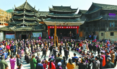 2月8日,通道侗族自治县坪坦乡坪日村举行架水节民俗活动,迎接新年。芦笙表演、打糍粑、打陀螺、合拢宴等独具侗族特色的民俗活动吸引了各地游客。(资料照片) 陈前君 张红 摄影报道