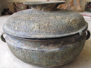 从夏晚期到汉代青铜器走向衰落,青铜器的纹饰经过了无数次的演变,在大型的青铜礼器上从来不乏精美的纹饰,然而在普通的实用器上却很少看到纹饰的影子。在王文秀收藏的青铜器里,有很多器物都不乏精美的纹饰,有的生产工具上甚至都有纹饰。王文秀说:“像青铜缶这一类的容器上,就很少有纹饰,如果有纹饰也是当时很显贵的家族定做的。因为在当时能做纹饰器物的人都相当于我们现在的特级工艺大师,不是每一个人都能做到加纹饰的。现在,我们考古发掘的,包括已经见到的青铜器,凡是带纹饰,而且纹饰特别漂亮的都是很显贵的人用的,所以能传世的就少,当然收藏价值也就高一些。”